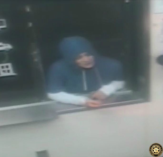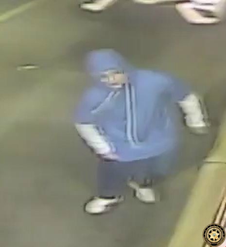 The suspect is described as a white woman in her late 20’s to early 30’s wearing a white long-sleeve shirt, a short-sleeve blue hooded-sweatshirt, dark pants with a patch on the left knee and white sneakers. She has a tattoo on the left side of her neck.