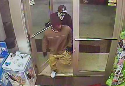 Both suspects then removed money from the business, according to a police news release. No one was hurt in the robbery.