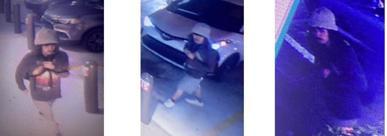 The suspect is described as a while male, approximately 18-30 years of age with dark shoulder length hair, facial hair, a light colored beanie hat, dark long sleeve shirt, gray shorts, one green and one red sock and white sneakers. He was carrying a large black hiking style backpack.