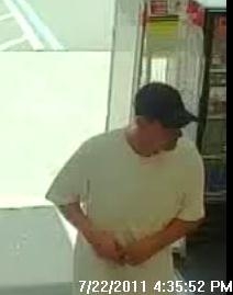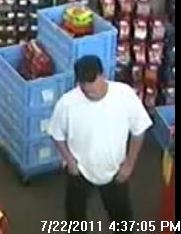 The suspect is described as 25 – 35 years of age, 150 – 170 pounds, with short brown hair.