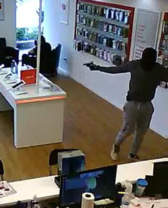 Two masked males, one – armed with a handgun, entered Verizon Wireless store to commit an armed business robbery. The suspects took multiple cell phones and cash then fled on foot.