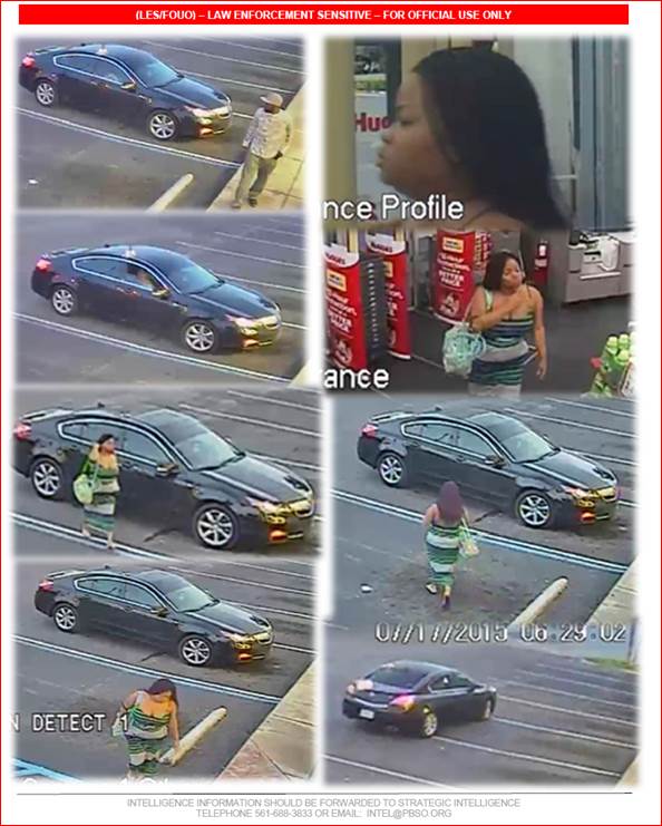 The unknown pair entered Walgreens located in the 100 block of N. Main Street, Belle Glade and used the stolen credit cards to make separate purchases. The pair left in a black Chevrolet Impala, with tinted windows and a spoiler on the rear. This incident occurred on July 17, 2015.