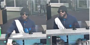 On 12/23/2016 the above pictured black male committed a bank robbery at the TD Bank located at 10149 Okeechobee Blvd in the city of Royal Palm Beach. No weapon was seen or implied and the suspect walked out of the business with no vehicle seen or heard.