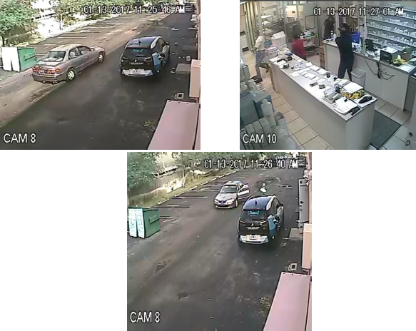 On January 13th, 2017 at 0940 hours the above pictured black male in the door way forced an employee into the business at gunpoint. He demanded money and oxycodone and was confronted by another employee behind the counter that was armed. The black male pointed his handgun at the employee who fired one round striking the wall next to the suspect. The black male then ran to the vehicle outside an older model Honda Accord and fled the scene.