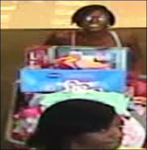 The suspect was captured on surveillance video exiting Target with merchandise she did not pay for.