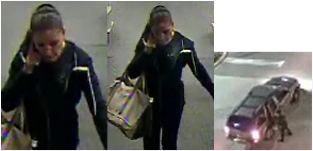 The unknown female was captured on the store surveillance video walking to and from the store then entering a light colored, older model SUV.  The store suffered a loss of over $ 1000.