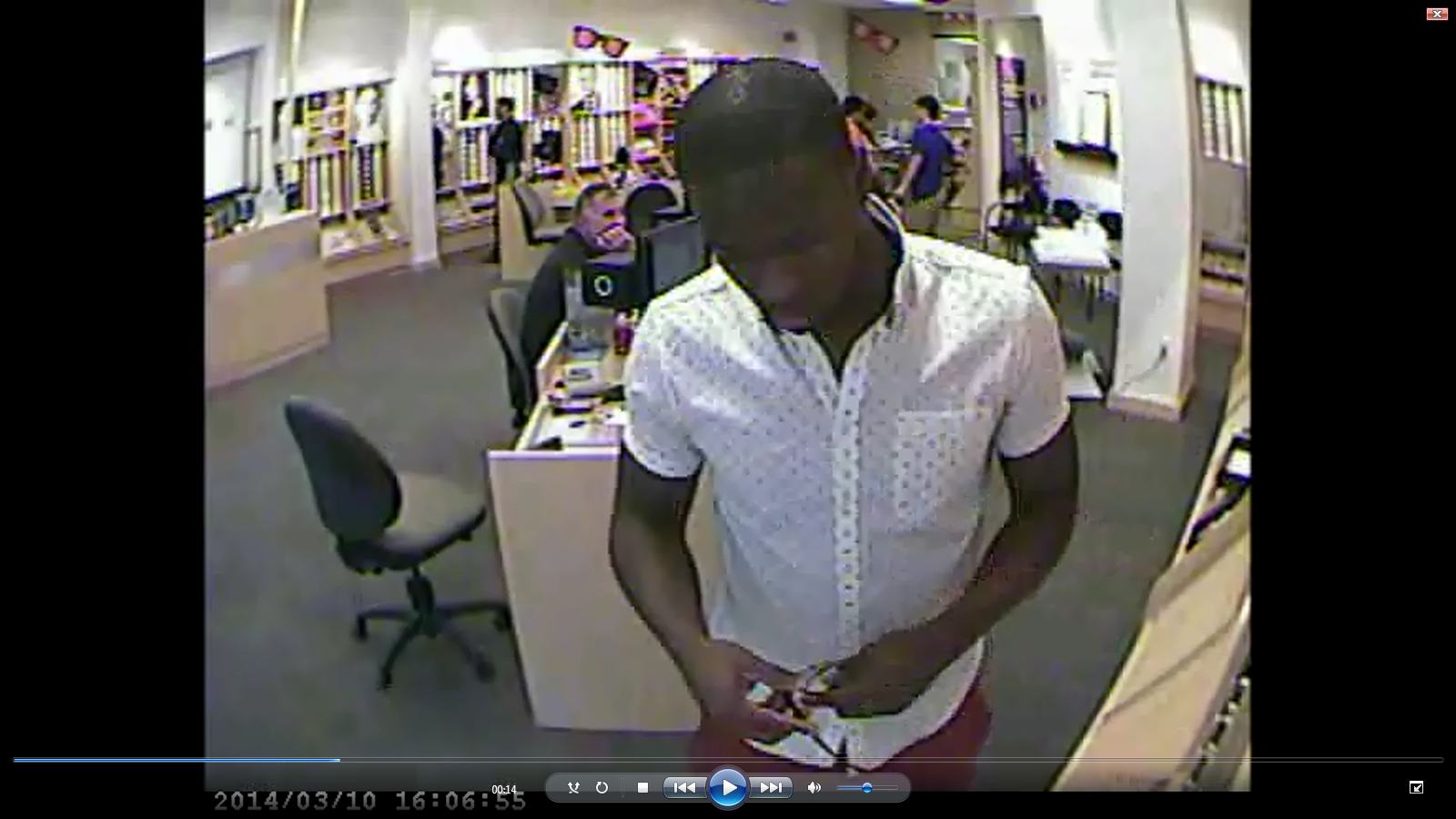 On March 10, 2014, at 2:43 pm, an unknown black male entered Lens Crafters located at 10300 Forest Hill Blvd, Wellington and stole over $ 3000 worth of designer frames. The suspect is described as a black male, brown eyes, black short hair, 6’00”, 200 lbs, wearing button down white shirt with red/pink skinny jeans, and tan shoes. He has noticeable braces on his teeth.