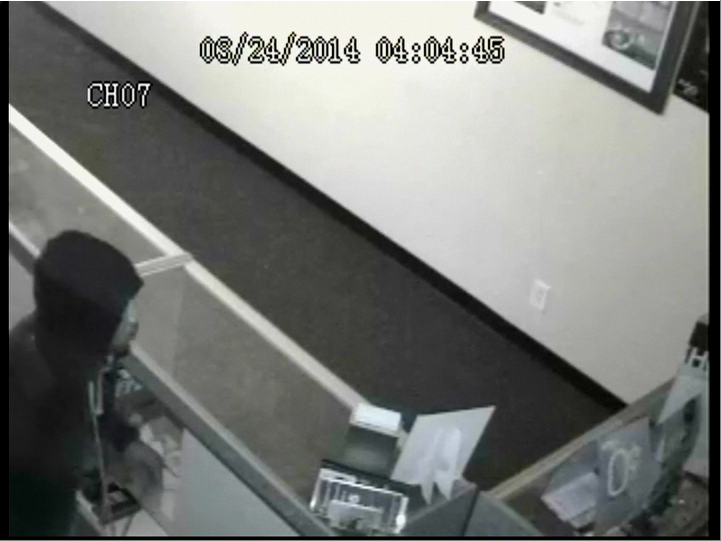 On March 24, 2014, at approximately 5:01 a.m., a business burglary occurred at The Mobile Hub located at 4879 Okeechobee Blvd, West Palm Beach. The male subject was seen walking around the outside of the store. He used a center punch to shatter the glass door to gain entry. Once inside he stole several android phones. The same male suspect then goes across the street to Telepage II Wireless, located at 4776 Okeechobee Blvd, West Palm Beach. He is seen walking back and forth in front of the business. He shatters a window on the front of the business, and is seen climbing in. He goes to the back room and steals five android cellular phones.