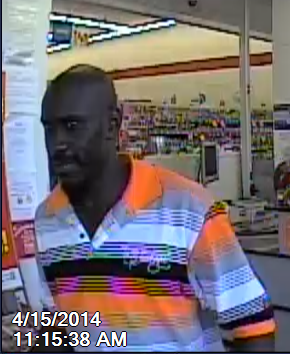 On April 15, 2014, at approximately 11:15 am, an unknown black male entered the Family Dollar located at 1206 South Dixie Highway, Lake Worth and stole Huggies diapers and V-neck white t-shirts. The suspect left in a late 1980’s or early 1990’s white four door Honda which was driven by a white, heavily built female, with blonde hair. The vehicle had plastic covering the rear windshield area and a temporary tag. The vehicle fled south bound on I-95 from 6th Avenue South.