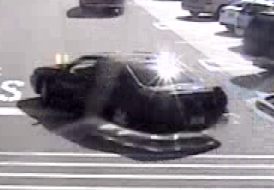 Both suspects appear to be black or Hispanic. The left in a dark colored Chevy Impala with a rear spoiler.