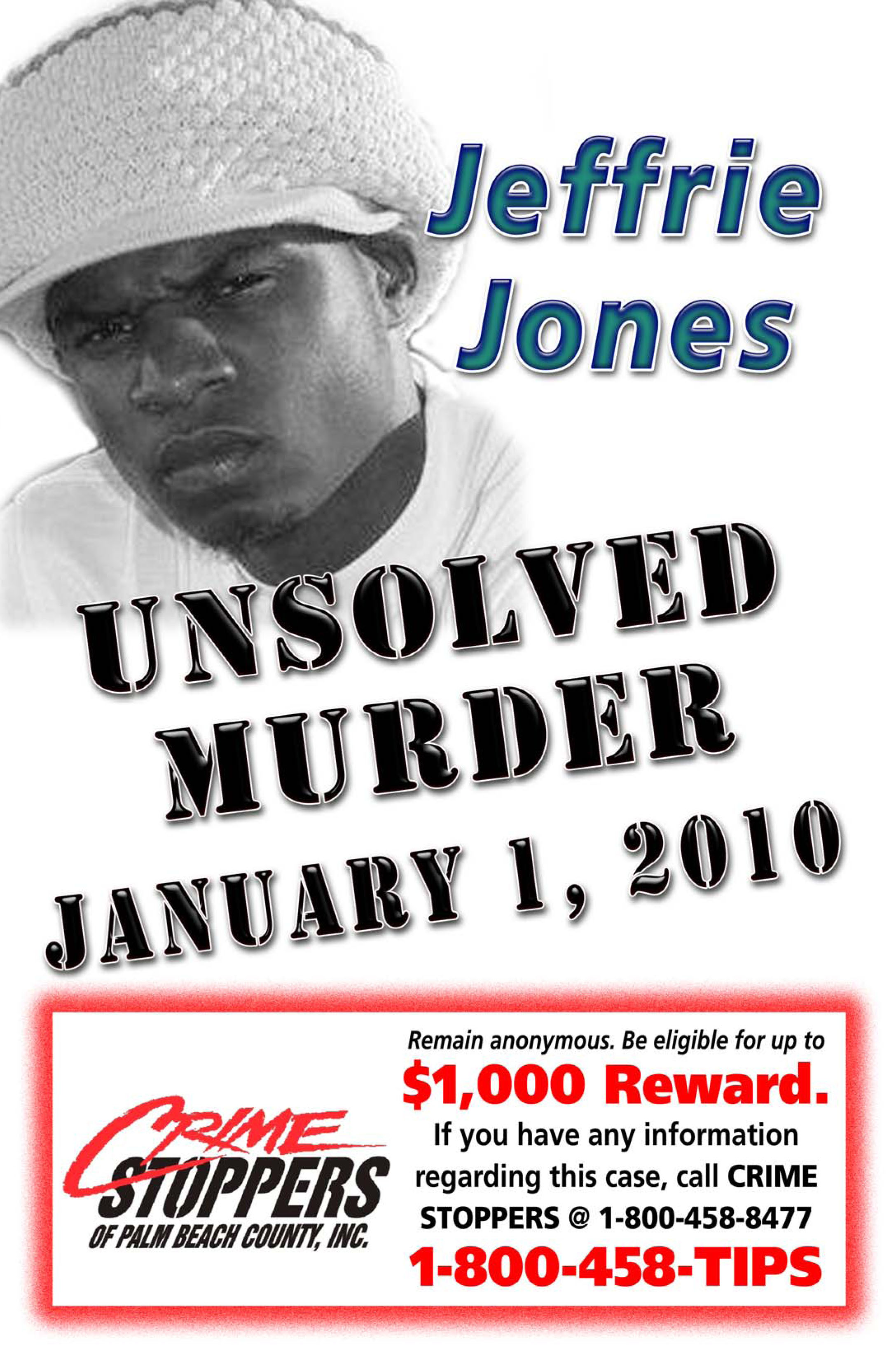 January 1st 2011 will be the one year anniversary of the unsolved homicide of Jeffrie Jones. It was the first homicide of the year in Palm Beach County.