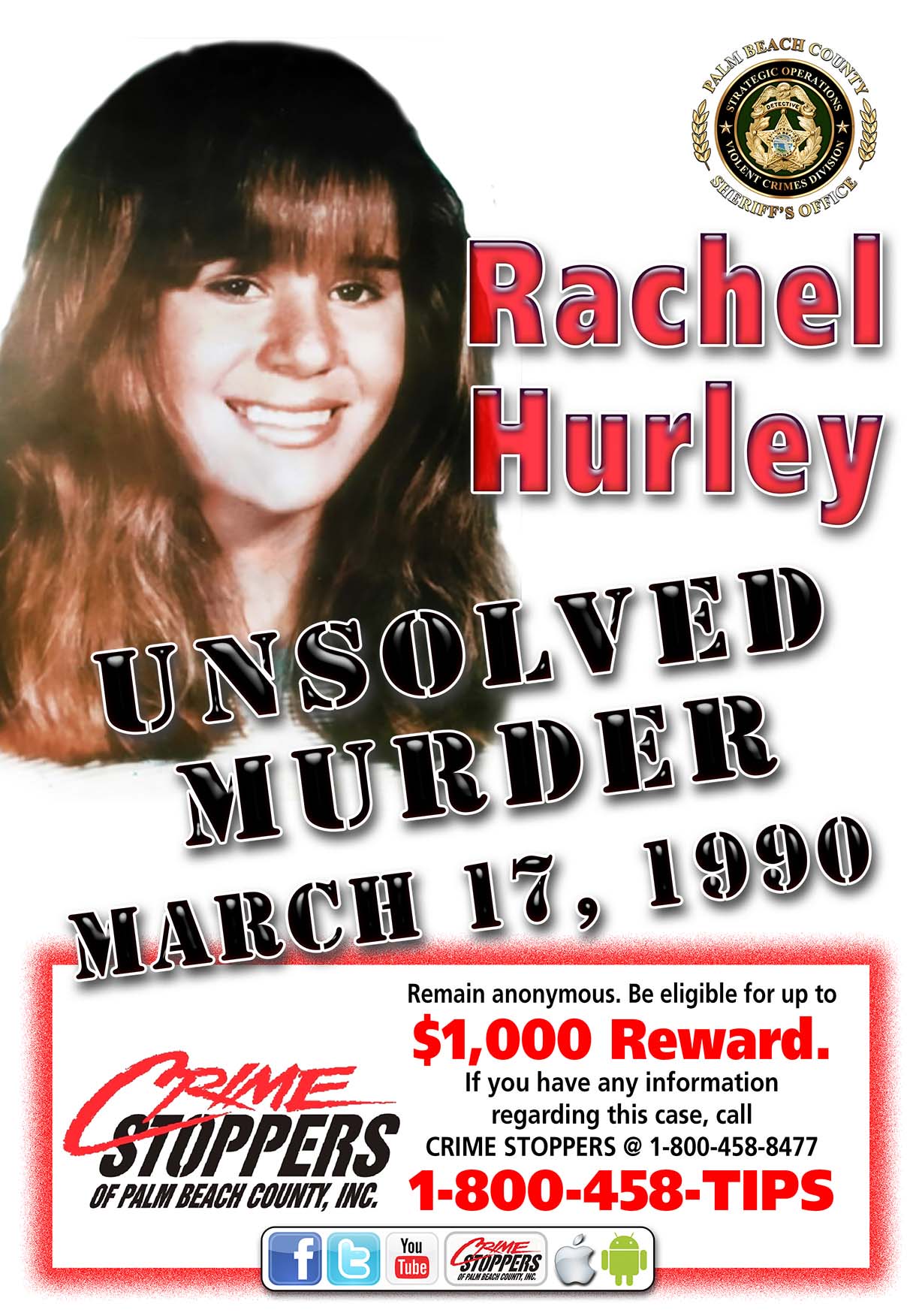 Palm Beach County Sheriffs Office Today marks the 25th anniversary of Rachel Hurley’s death. Detectives are seeking any information regarding this case.By South Florida Web Advisors / March 17, 2015