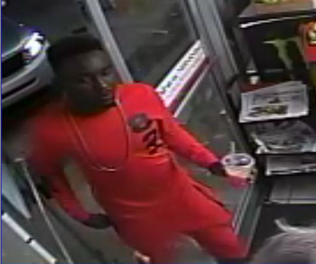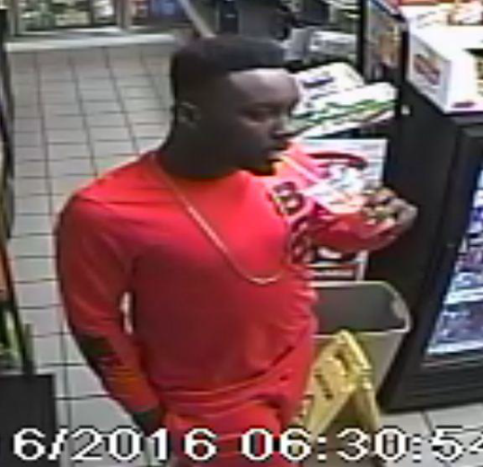 On Tuesday, February 16th 2016 at approximately 1535 hours, the 80 year old victim had dropped off a donation at the Goodwill store located at 9764 S. Military Trail in Boynton Beach. The victim returned to her vehicle and opened the door to sit inside. Once seated in the vehicle and before she could get her legs into the vehicle, a black male suspect approached the drivers door and grabbed the victims purse to forcefully remove it from her grasp. Victim was dragged from her vehicle by suspect until she released the purse. Suspect fled NB towards YMCA. Approximately two hours later the victims credit cards were used by the suspect at various locations in Plantation, Lauderdale Lakes, and Lauderhill. The suspect is described as a black male, 17-20 years of age standing at 5’10-6 foot tall and a slender/muscular build and flat top hair style. Suspect is shown here in red clothing.