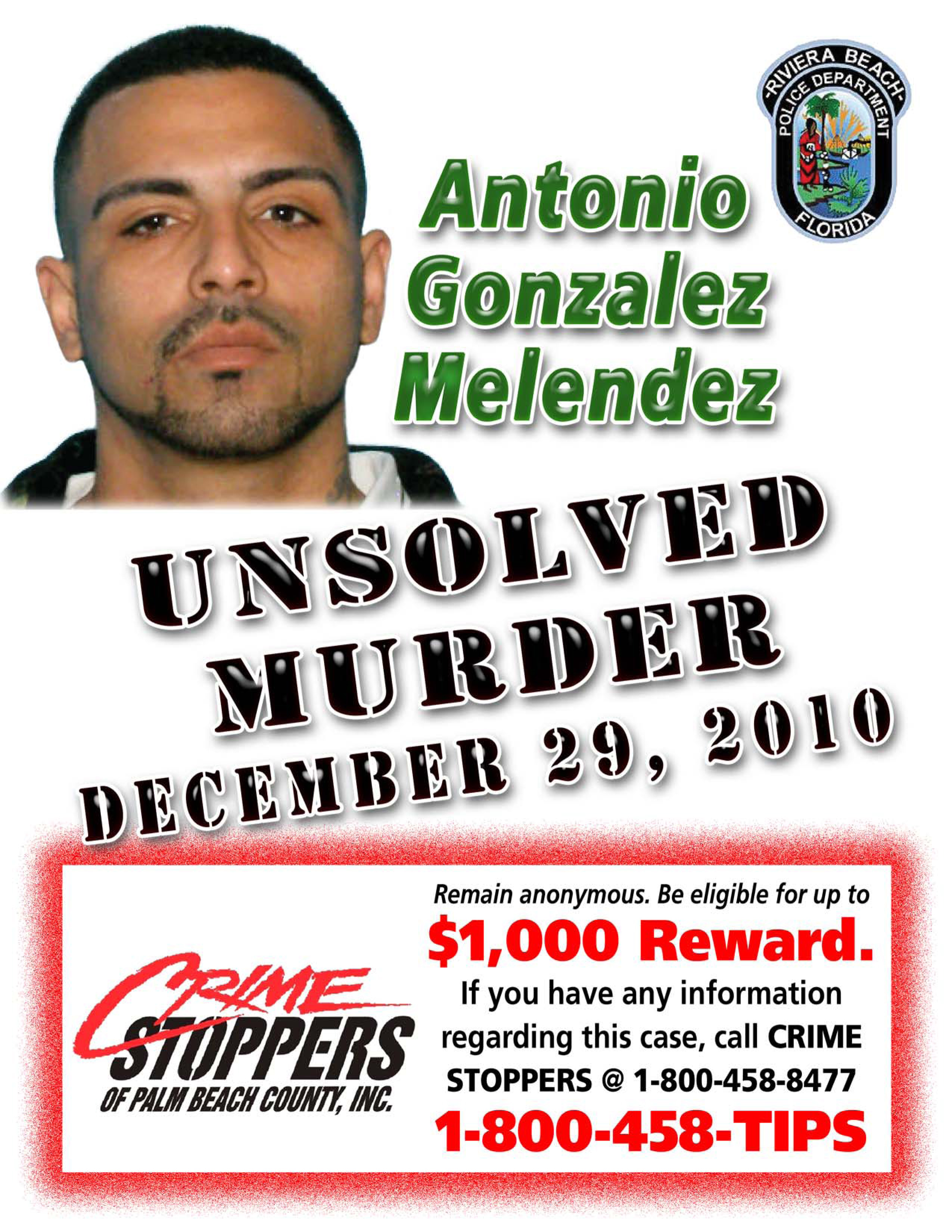 Riviera Beach Police Department is investigating the homicide of Antonio Melendez Gonzalez