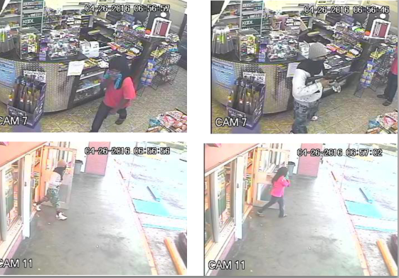 On Tuesday, April 26th, 2016 at approximately 7:00AM, an armed business robbery occurred to the Kelsey Store located at 903 Park Avenue in Lake Park, FL. The still images below are of the two black male suspects. One suspect was armed with a long gun and the second suspect was armed with a pistol. The suspects were last seen on foot eastbound from the store. A passerby flagged down a PBSO D/S en route to the call of a male running around with a rifle in the area of 10th and Laurel.
