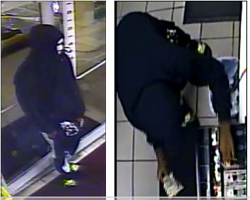 An unknown male, seen below, entered BP Gas Station store walked around then left. Minutes later a masked male entered the business walked up to the cash counter and demanded the clerk open the register and safe. The suspect grabbed the cash and fled to an awaiting vehicle.