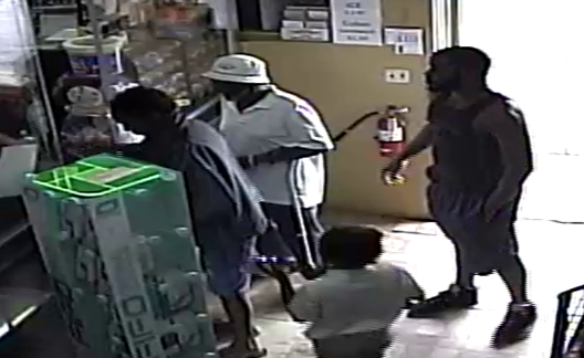 The suspect is described as a black male, with a beard, wearing a black tank top, long shorts and dark shoes.