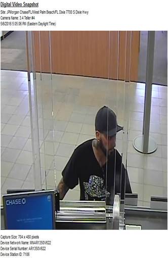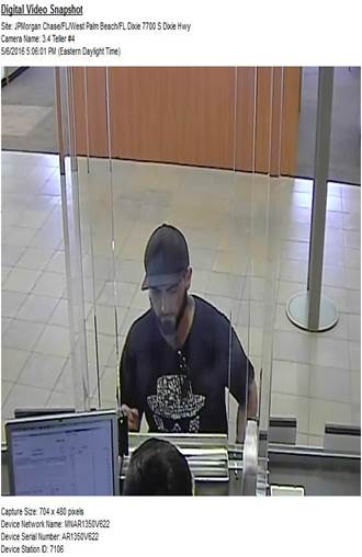 This incident occurred on May 6, 2016. Chase Bank is located in the 7000 block of Dixie Highway, WPB. The victim’s car burglary occurred in the 1900 block of East Coast Ave, WPB