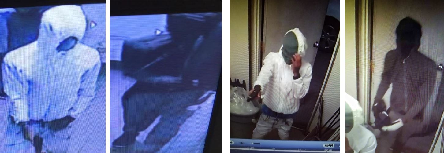 Suspect 1, was identified as a black male, approximately 5’10 – 6’, wearing a white sweatshirt and blue jeans. Suspect 2, was identified as a black male, approximately 5’09”, wearing black sweatshirt, gray pants and a splint or cast on his left hand.