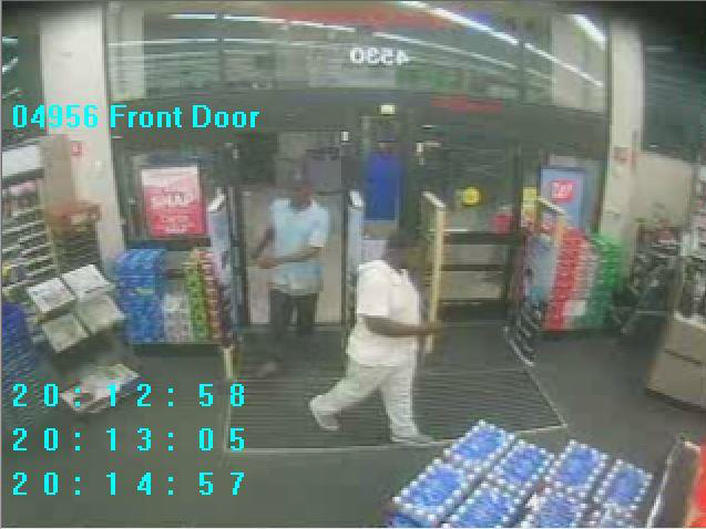On Saturday October 3rd 2015 the above suspects committed a robbery at the Walgreens located at 4530 Lantana Rd. Both are described as black males and between 35-45 years of age. The suspect in white is described as 5’5-5’7 and 230lbs. Suspect in blue is over 6 foot tall and weighs 200lbs. Both suspects fled in a light blue/green Hyundai Santa Fe driven by a white female.
