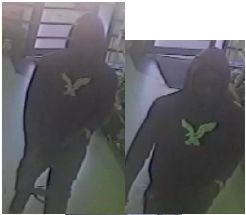 Suspect one, appears to be a black male, between the ages of 18 – 20, 140 – 160 lbs., wearing a black hooded sweat shirt with a light green emblem on the front, dark pants and had gold teeth.