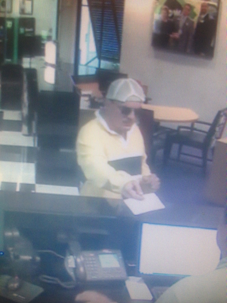 On April 18th shortly after 7:30 p.m., TD Bank located at 2130 Centerpark West Drive was robbed. The suspect passed a threatening note to the bank teller and demanded cash. He received an undisclosed amount of money and fled. Witnesses described the suspect as a white male in his 40s. We believe this is the same suspect, who robbed a Greenacres TD Bank yesterday.